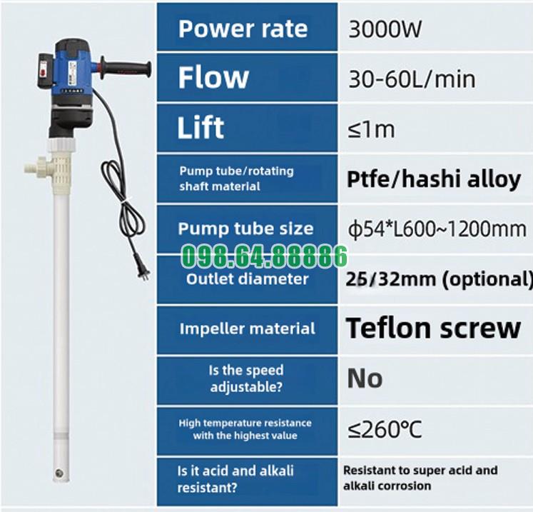 Vai trò của trục quay hợp kim trong thiết kế Bơm trục vít cầm tay hút thùng phuy JDT-3000W-PTFELG là đảm bảo quá trình truyền động ổn định giữa động cơ và trục vít, đồng thời tăng độ bền và khả năng chống ăn mòn cho thiết bị. Nhờ sử dụng vật liệu hợp kim chất lượng cao, trục quay giúp bơm vận hành bền bỉ, ổn định và phù hợp với nhiều môi trường công nghiệp khác nhau.