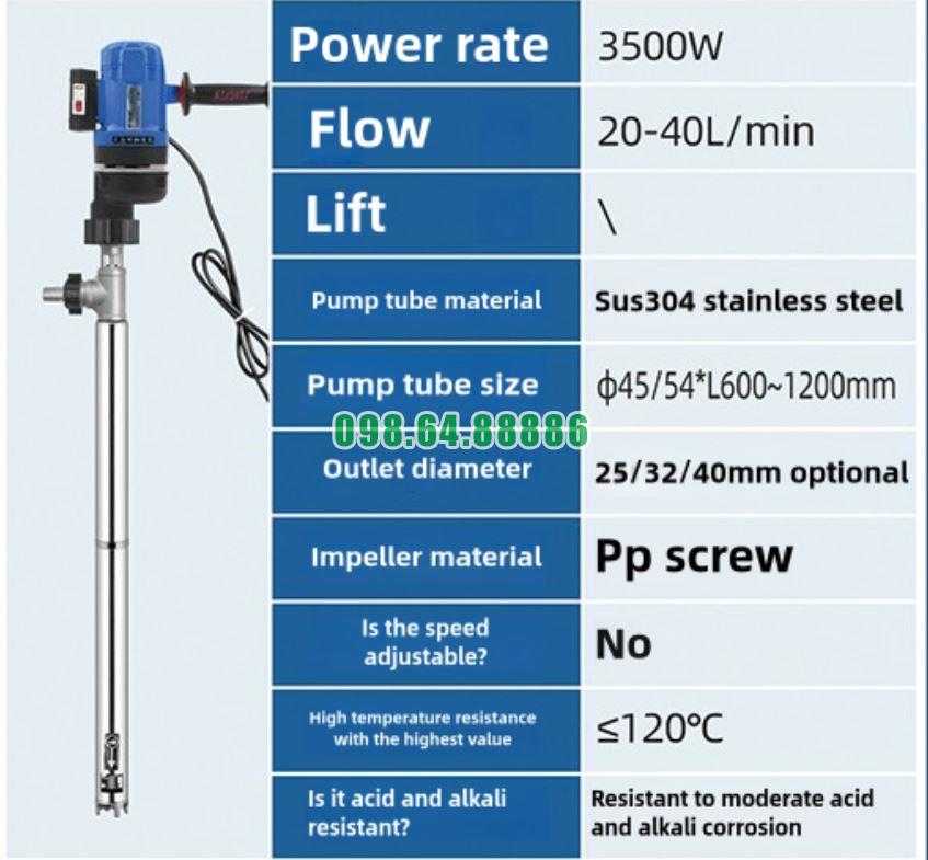 Máy bơm JDT-3500W-LGG120 có thể điều chỉnh lưu lượng bơm từ 20-40L/phút nhờ vào khả năng điều chỉnh tốc độ quay của cánh bơm. Điều này đảm bảo rằng quá trình bơm chất lỏng có thể được kiểm soát một cách chính xác, giúp tối ưu hiệu suất làm việc mà không làm ảnh hưởng đến công suất của động cơ.