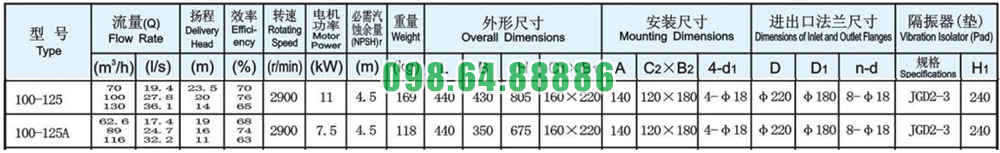 Bơm ISG100-125A, IRG100-125A thường có lưu lượng thiết kế trong dải 80 – 200 m³/h (tùy phiên bản).