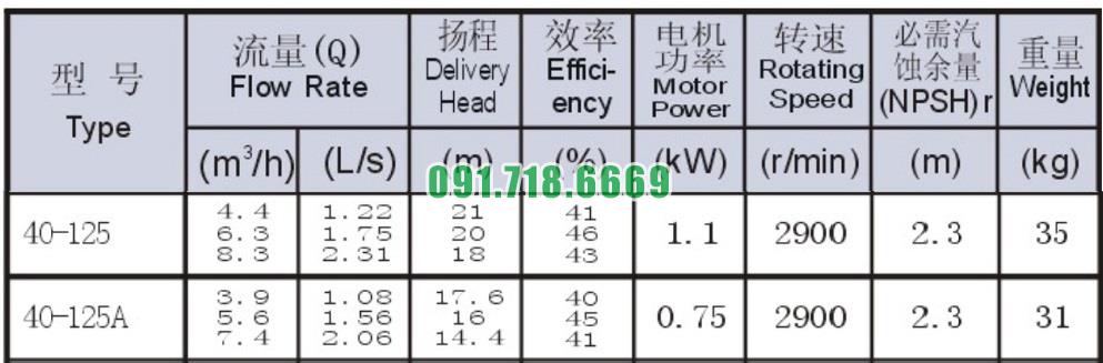Bán bơm nước li tâm trục ngang SLW-ISW40-125