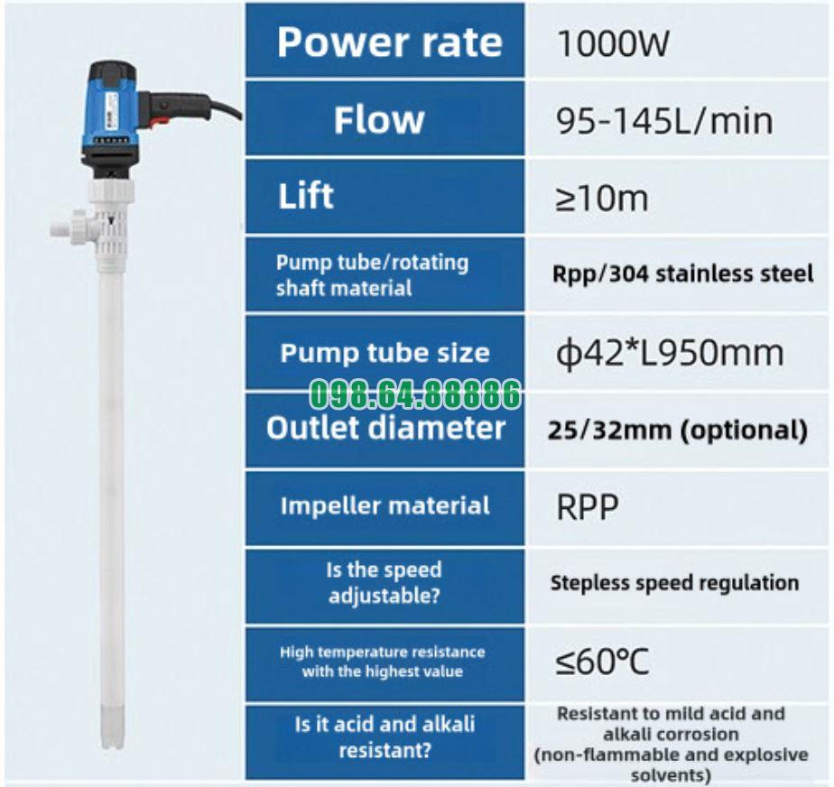 Bơm chất lỏng thùng phuy JDT-1000W-RPP