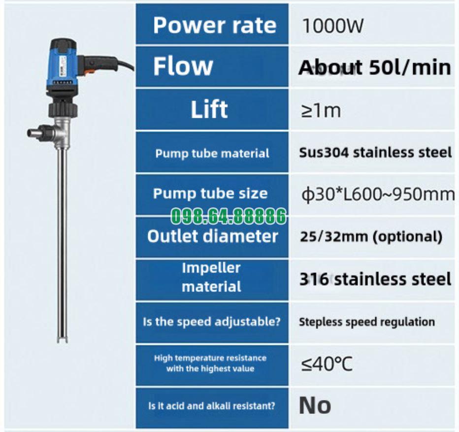 Bơm dầu thùng phuy cỡ nhỏ JDT-1000W-30SUS304