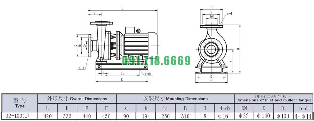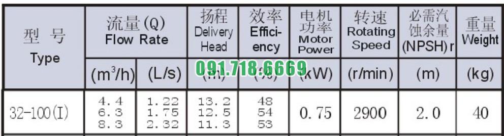 Bơm li tâm trục ngang ISW32-100-I động cơ 0.75 kw năng suất 54%
