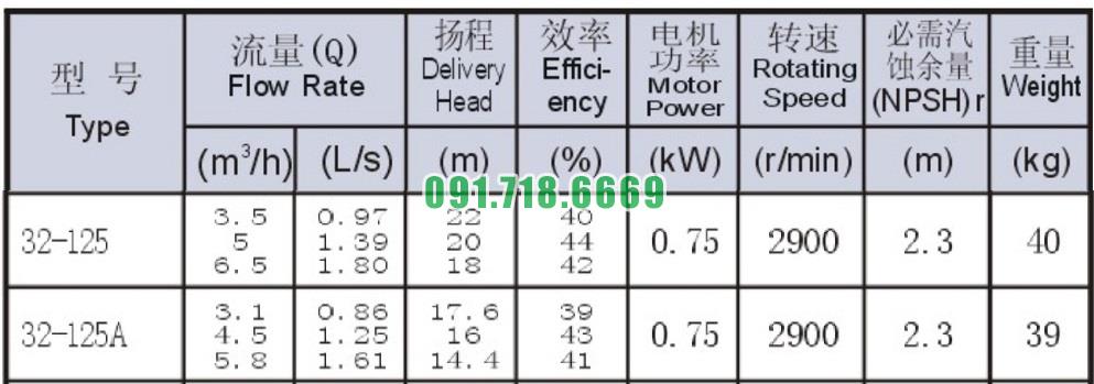 Bơm li tâm trục ngang ISW32-125 động cơ 0.75 kw năng suất 42%