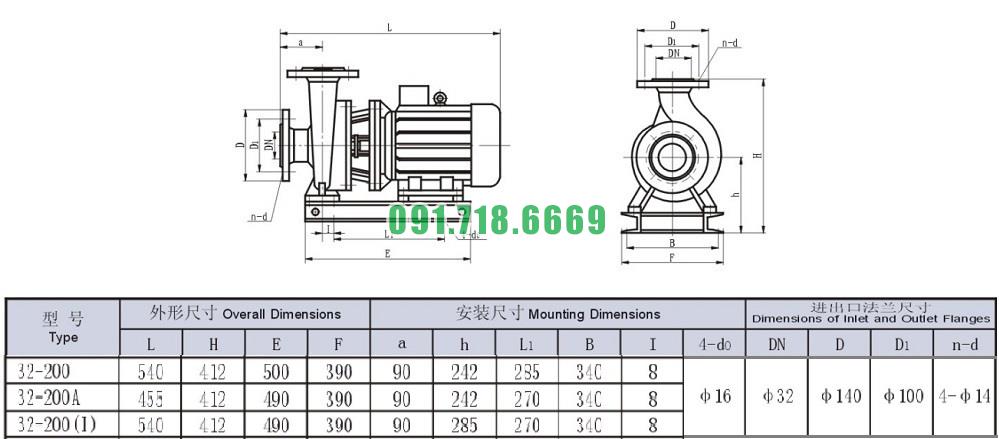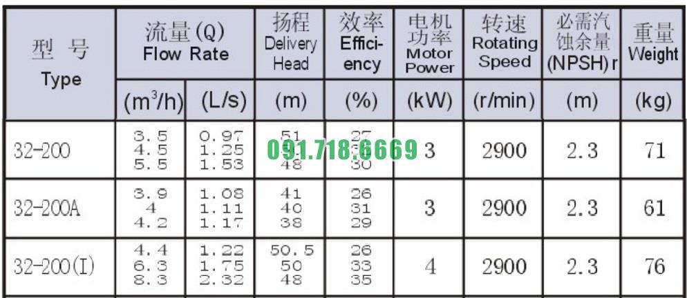 Bơm li tâm trục ngang ISW32-200 có động cơ 3 kw đẩy cao 51m