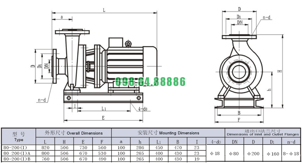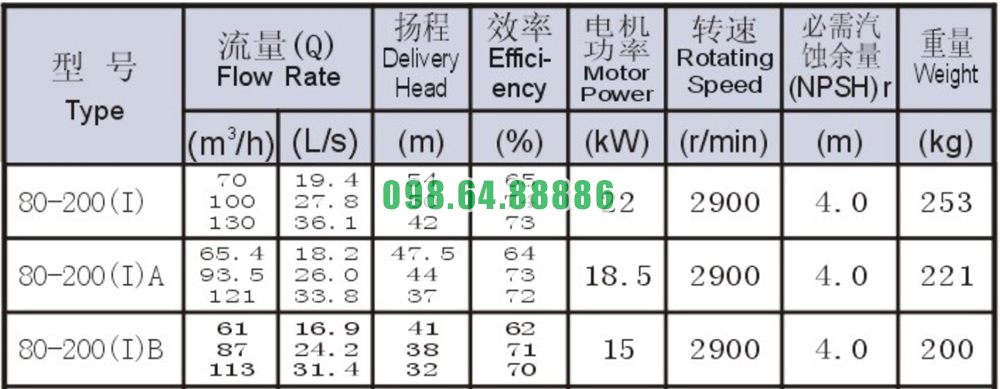 Bơm li tâm trục ngang model SLW80-ISW80-200-I công suất 36.1 L/s