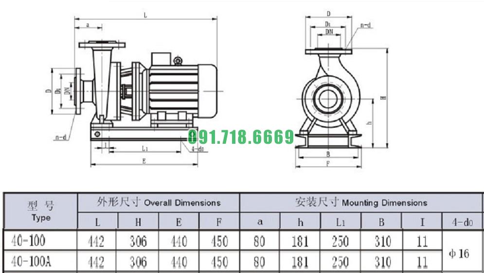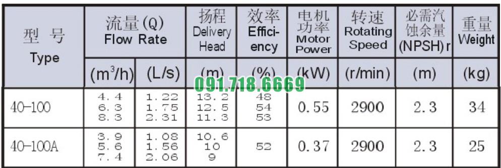 Bơm li tâm trục ngang SLW-ISW40-100 có động cơ 0.55 kw đẩy cao 13.2m