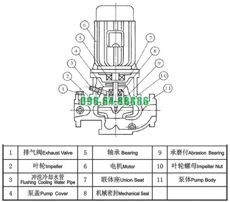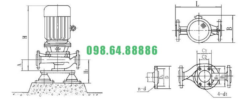 Bơm ly tâm trục đứng model ISG25-125 động cơ 0.75 kw