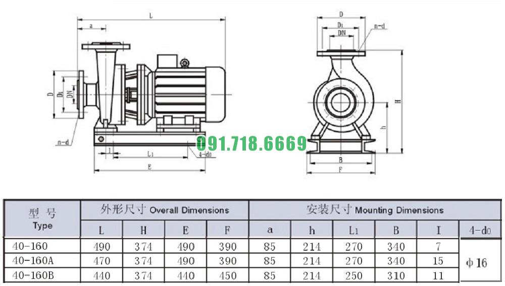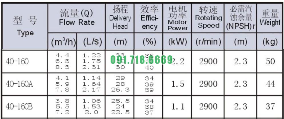 Bơm nước nằm ngang SLW-ISW40-160 vòng quay 2900 r/min