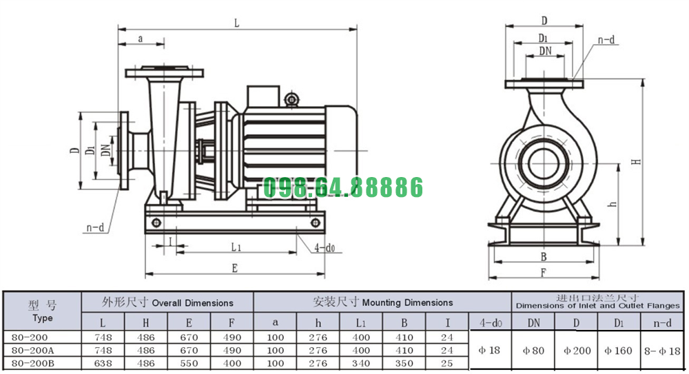 Bơm nước nằm ngang SLW80-ISW80-200 độ hút sâu 3m