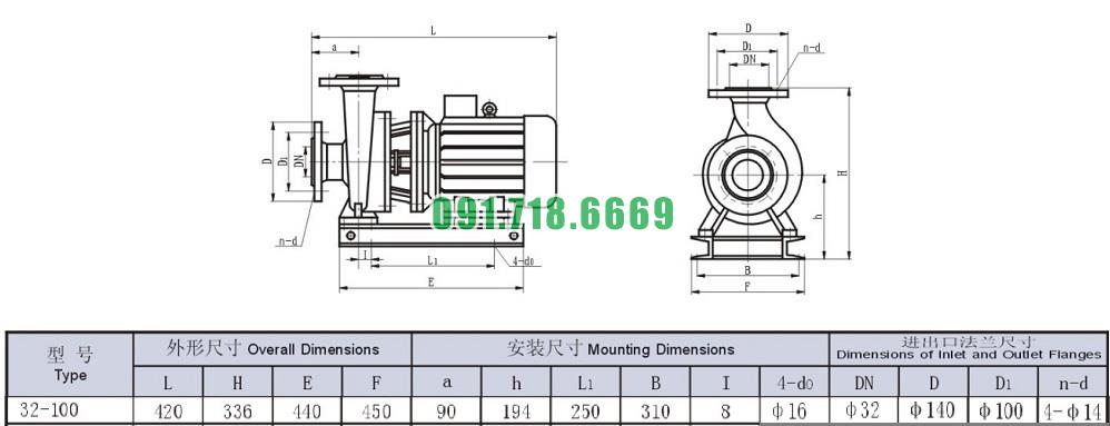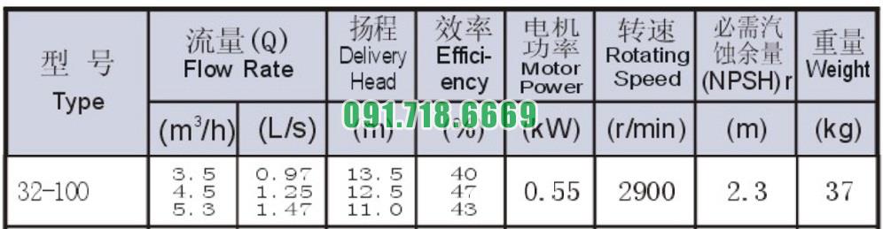 Bơm nước trục ngang ISW32-100 đẩy cao max 13.5m