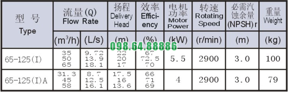 Bơm nước trục ngang SLW65-ISW65-125-I động cơ 5.5 kw