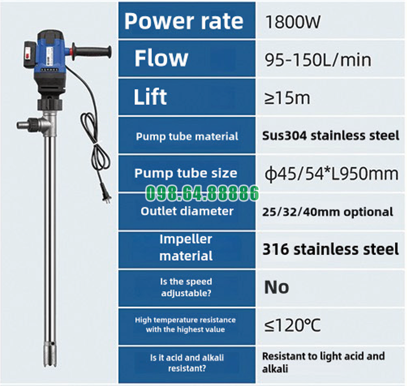 Thiết kế này giúp bơm thùng phuy nhiệt độ cao JDT-1800W-G120 đạt lưu lượng ổn định từ 95 đến 150 lít/phút trong quá trình vận hành.