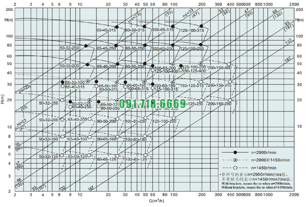 Bảng lưu lượng của bơm li tâm cánh hở công suất 37 kw model IHK100-65-250