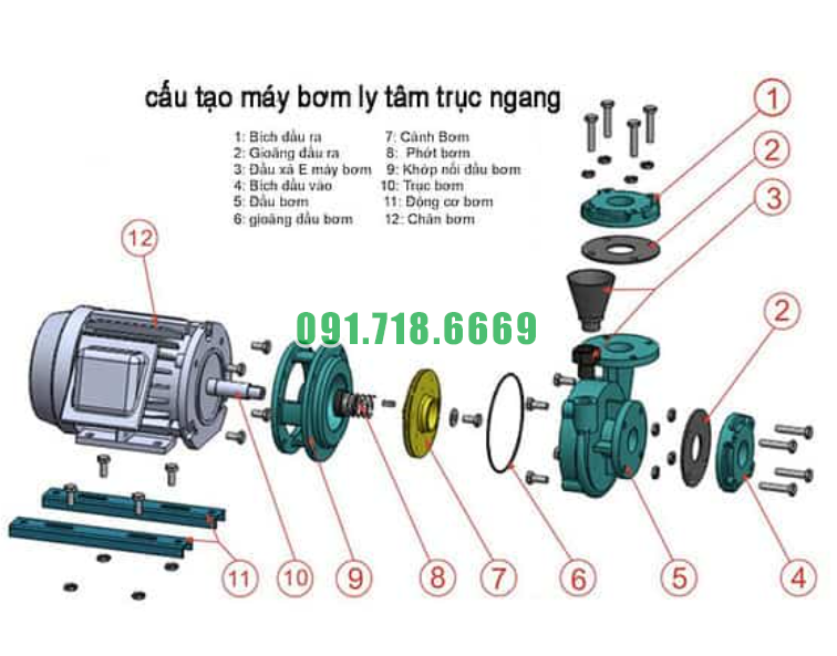 Động Cơ: Là bộ phận cung cấp nguồn năng lượng cho máy bơm. Động cơ thường được gắn cố định trên một phần của vỏ bơm và kết nối với trục quay để tạo ra chuyển động quay.