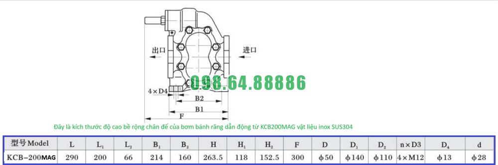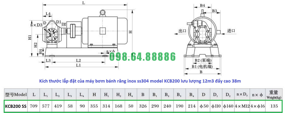 Máy bơm bánh răng KCB200 động cơ điện 4kw-4